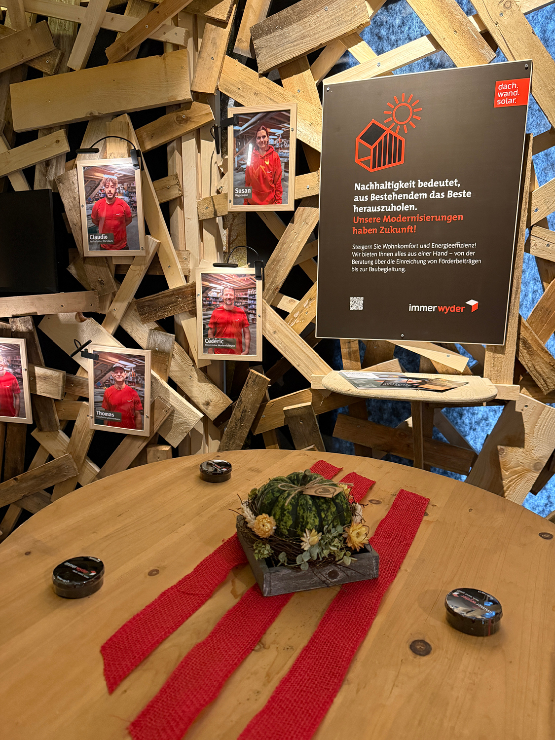 Der zweite Messetag stand ganz im Zeichen der Zukunft: Beim Lehrstellenrundgang präsentierte unser Lernender Max, wie aus einem Stück Naturschiefer ein Herz entsteht – präzise, handwerklich und mit viel Herzblut. Viele Schülerinnen und Schüler nutzten die Gelegenheit, sich über unsere Lehrberufe als DachdeckerIn, FassadenbauerIn oder SolarinstallateurIn zu informieren. Auch im weiteren Verlauf des Tages herrschte reger Betrieb: Interessierte Besucher, bekannte Gesichter und neugierige Fachleute machten Halt an unserem Stand, um mehr über unsere Projekte und Produkte zu erfahren.