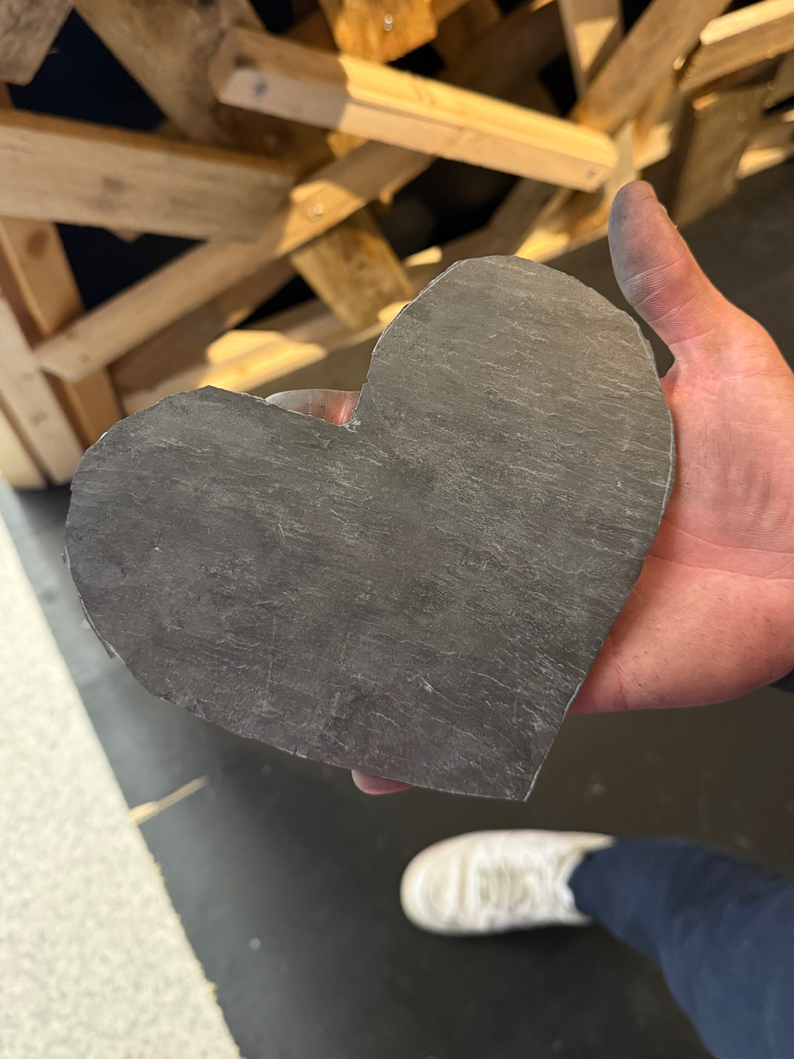 Am letzten Messetag herrschte in der Halle reger Betrieb – das wechselhafte Wetter trieb viele Besucherinnen und Besucher nach drinnen, wo wir sie an unserem Stand empfingen. Besonders beliebt war unsere Mitmachstation, an der man selbst Herzen aus Naturschiefer schneiden konnte. Das kam bei Gross und Klein gut an: Während die Kinder konzentriert werkelten, nutzten die Eltern die Zeit für Gespräche und einen Blick auf unsere Arbeiten, wenn sie nicht gerade damit beschäftigt waren fleissig mitzuhelfen.